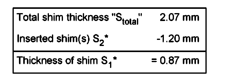 Determine total shim thickness "Stotal" (S1 plus S2)