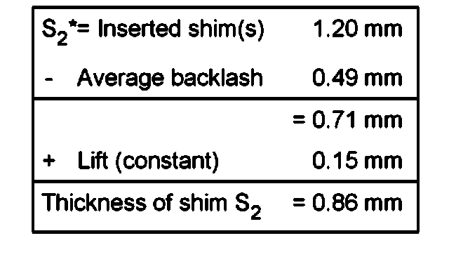 Note: For measurement purposes a shim S2 with a thickness of 1.20 mm is inserted provisionally. It is referred to as S2* in the following. After determining the backlash, S2* is replaced by the final shim S2.