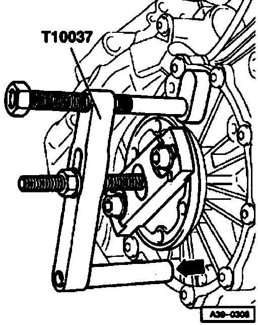 - Remove flange shaft; by screwing puller T1 0037 to differential cover (arrow).