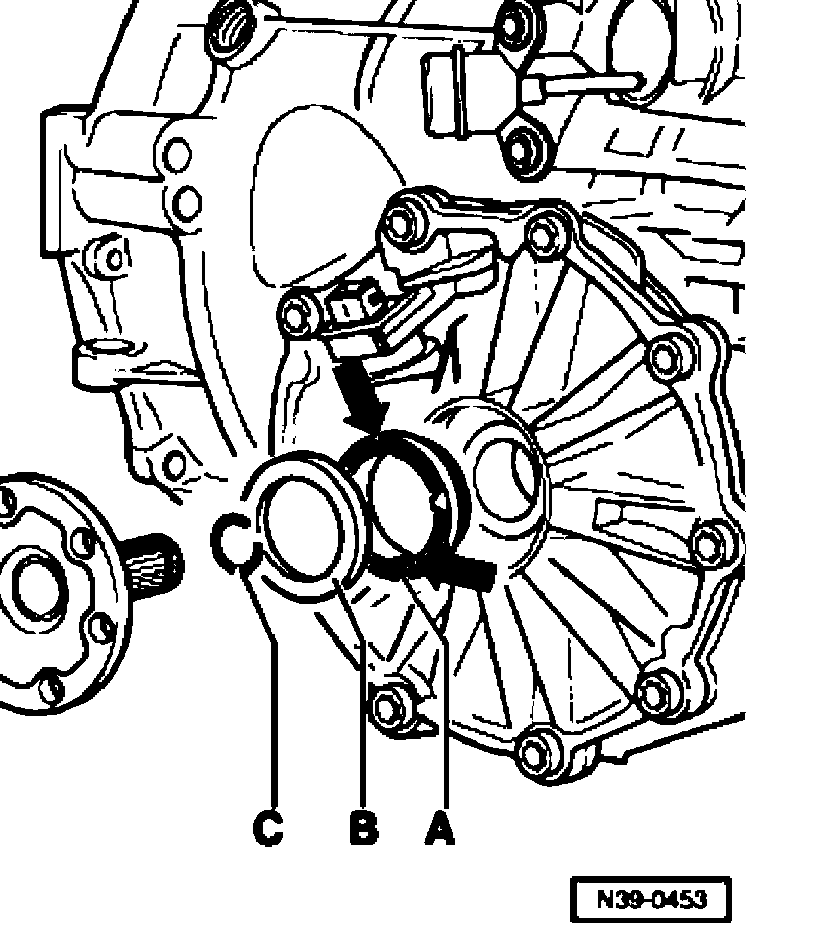 The drive peg of the drive wheel -A- faces seal -B- located in the groove of the differential.