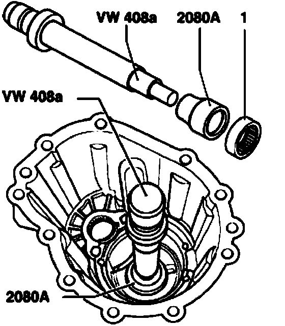 - Drive needle bearing into transfer housing up to stop using VW408A punch.