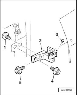 - Tighten locating bolt - arrows - in window frame to 32 Nm.