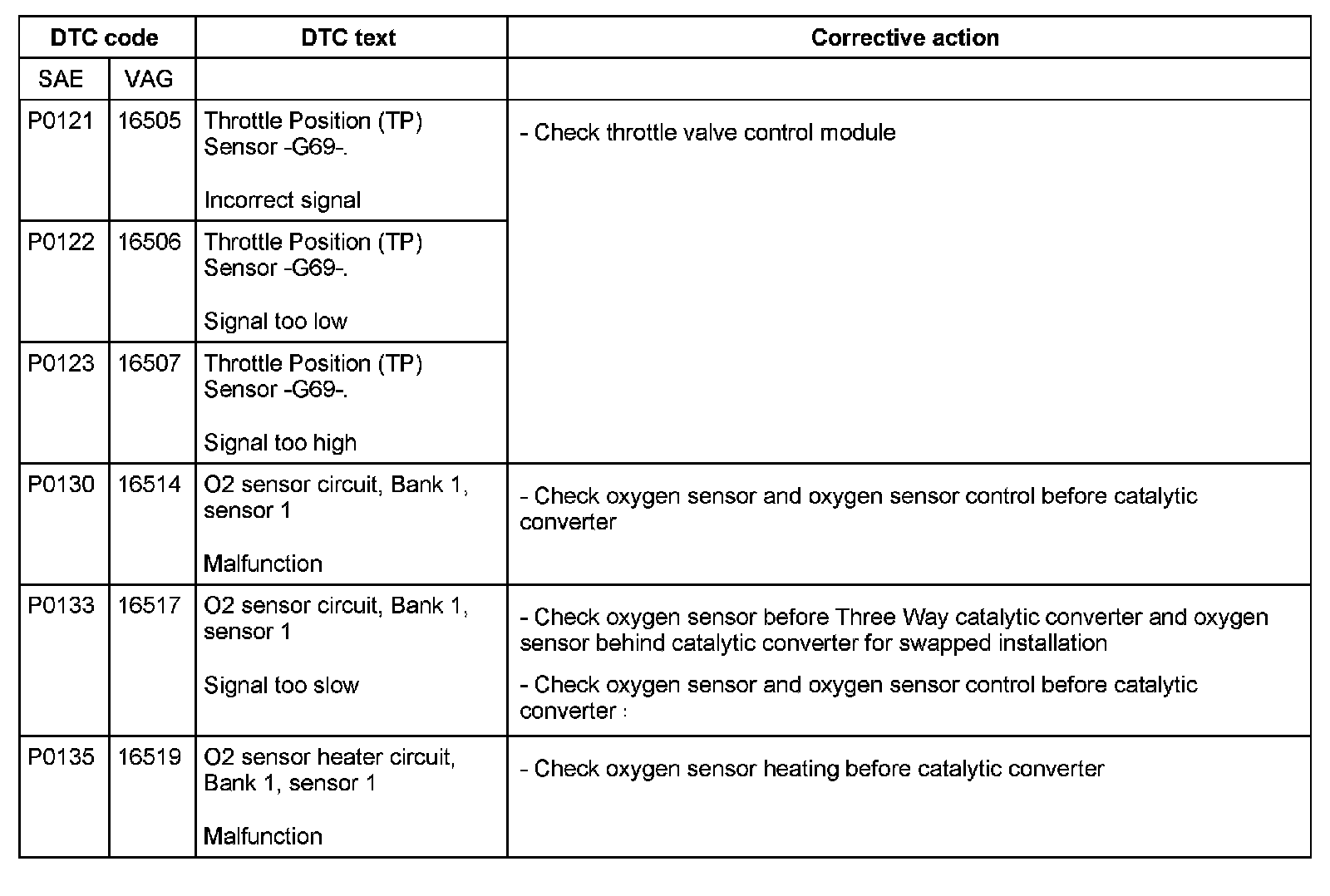 DTC P0121 - P0135: