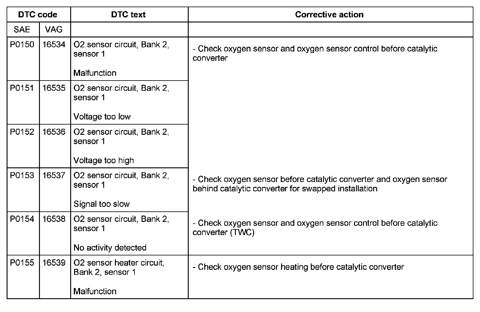 DTC P0150 - P0155: