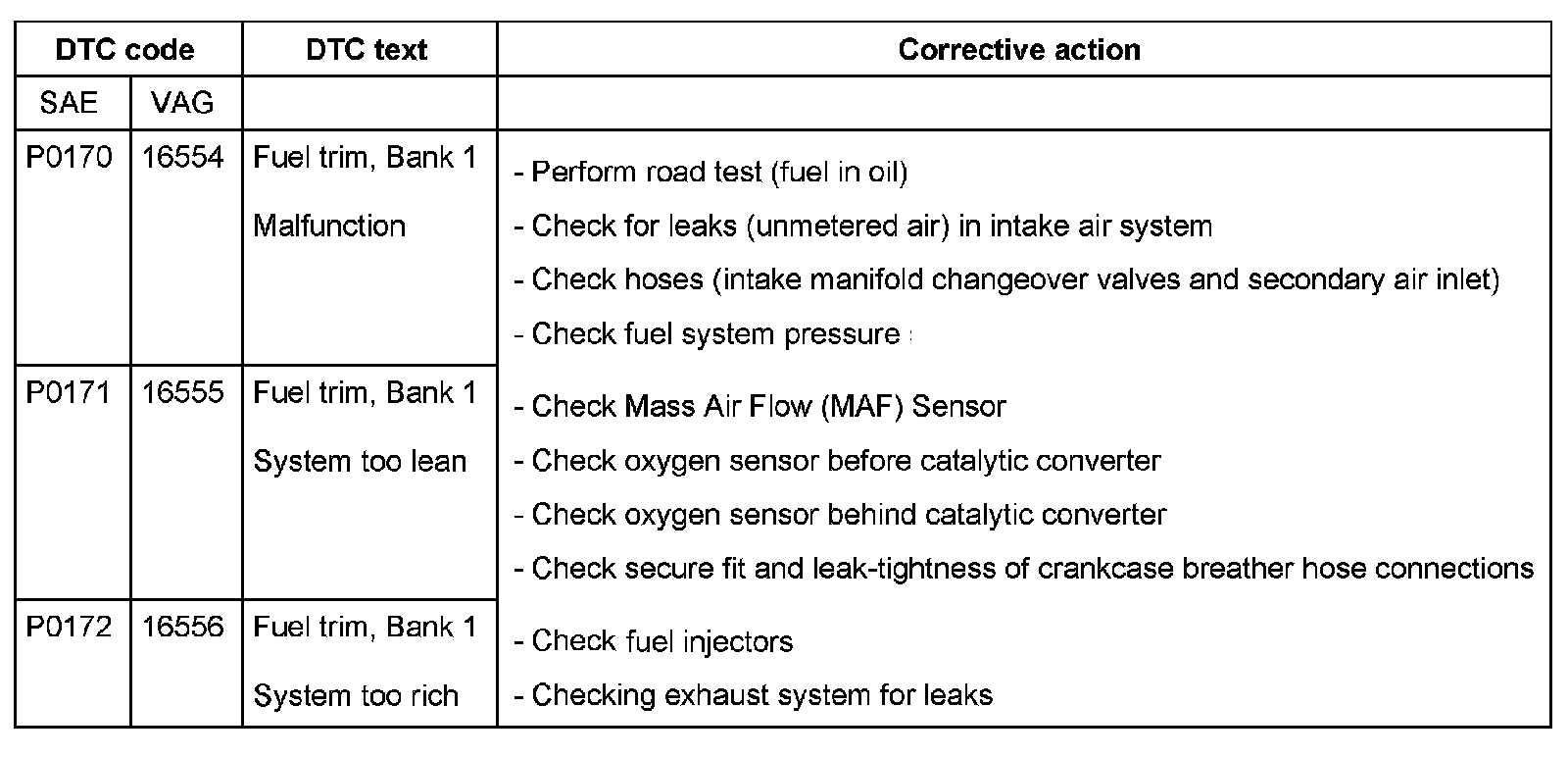 DTC P0170 - P0172: