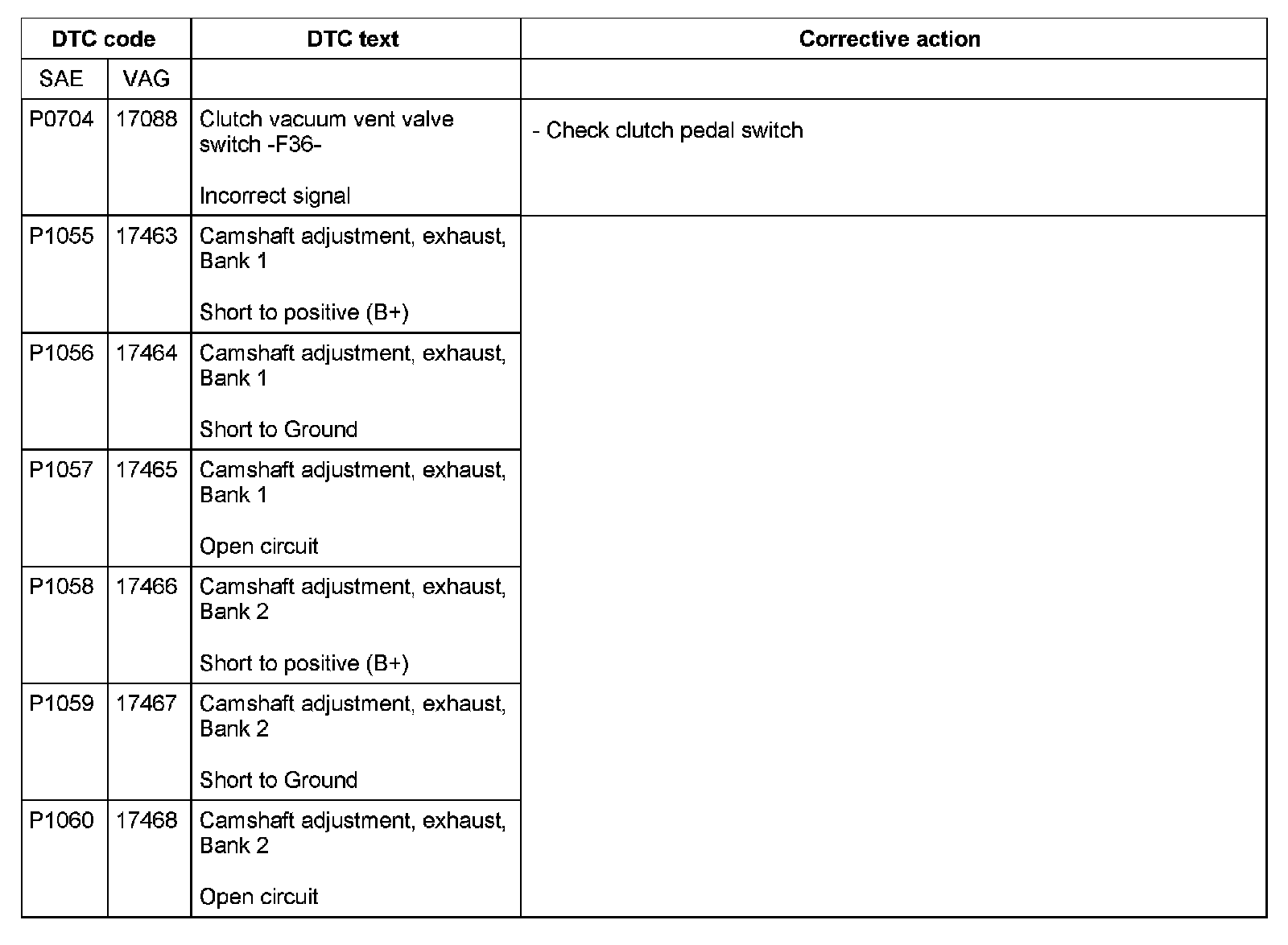 DTC P0704 - P1060: