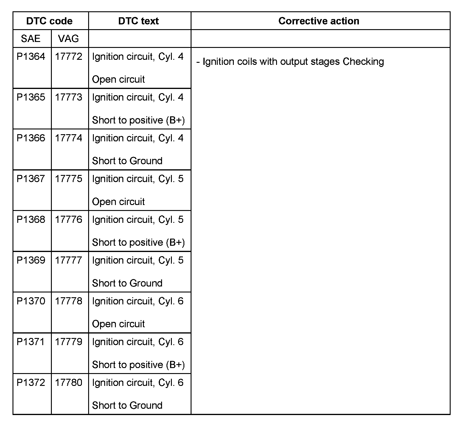 DTC P1364 - P1372: