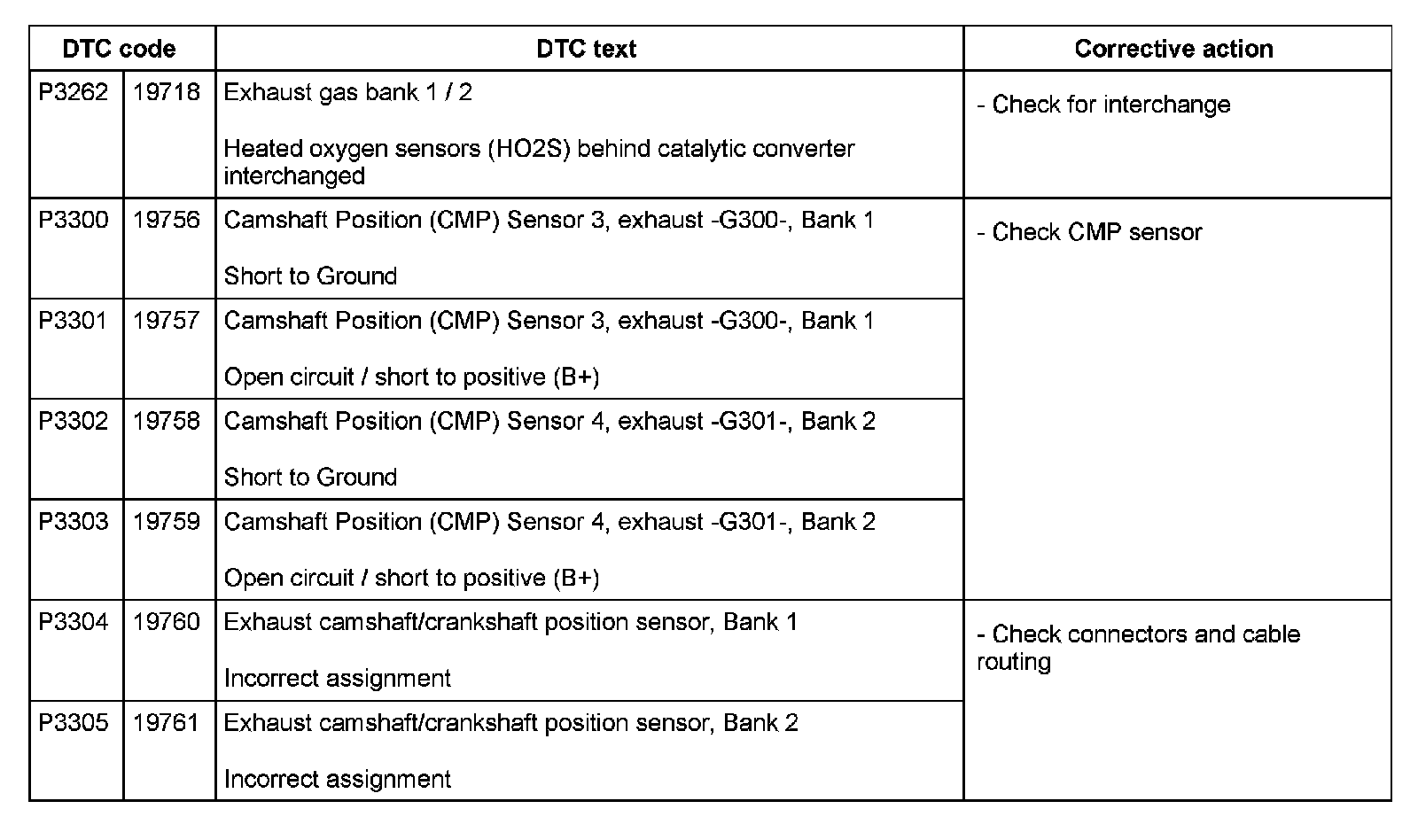DTC P3262 - P3305: