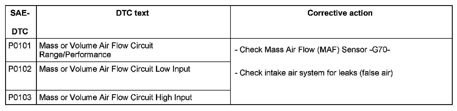 DTC P0101 - P0103: