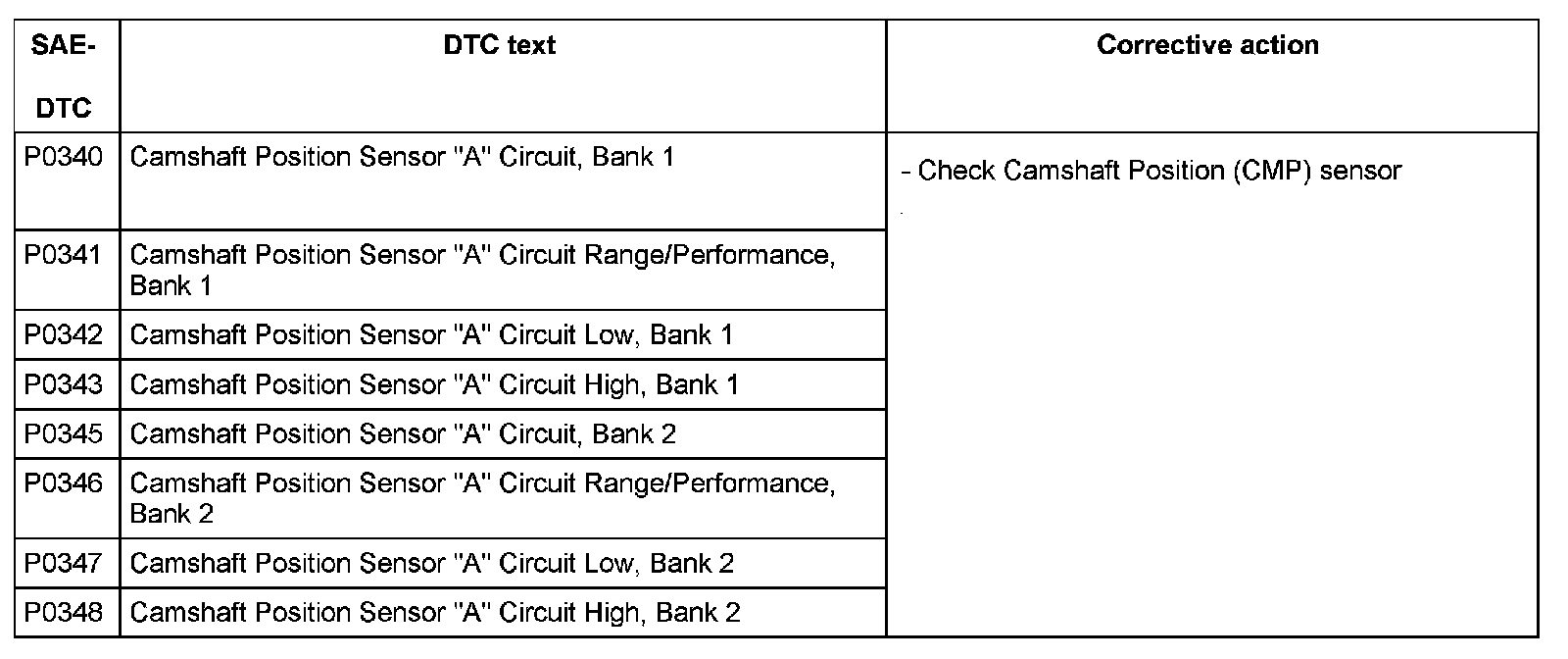 DTC P0340 - P0348: