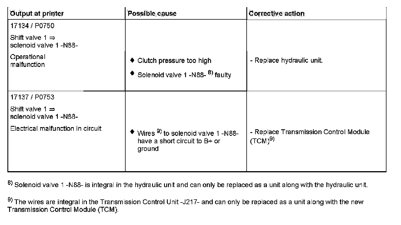 P0750 shift valve 1= solenoid valve 1 -N88-; Operational malfunction