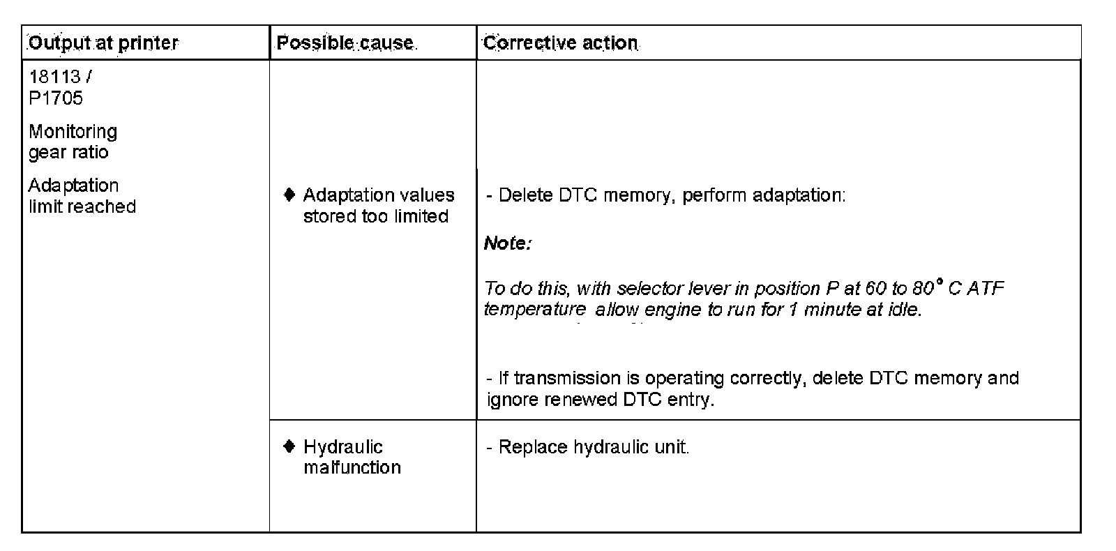 P1705 Monitoring gear ratio; Adaption limit reached