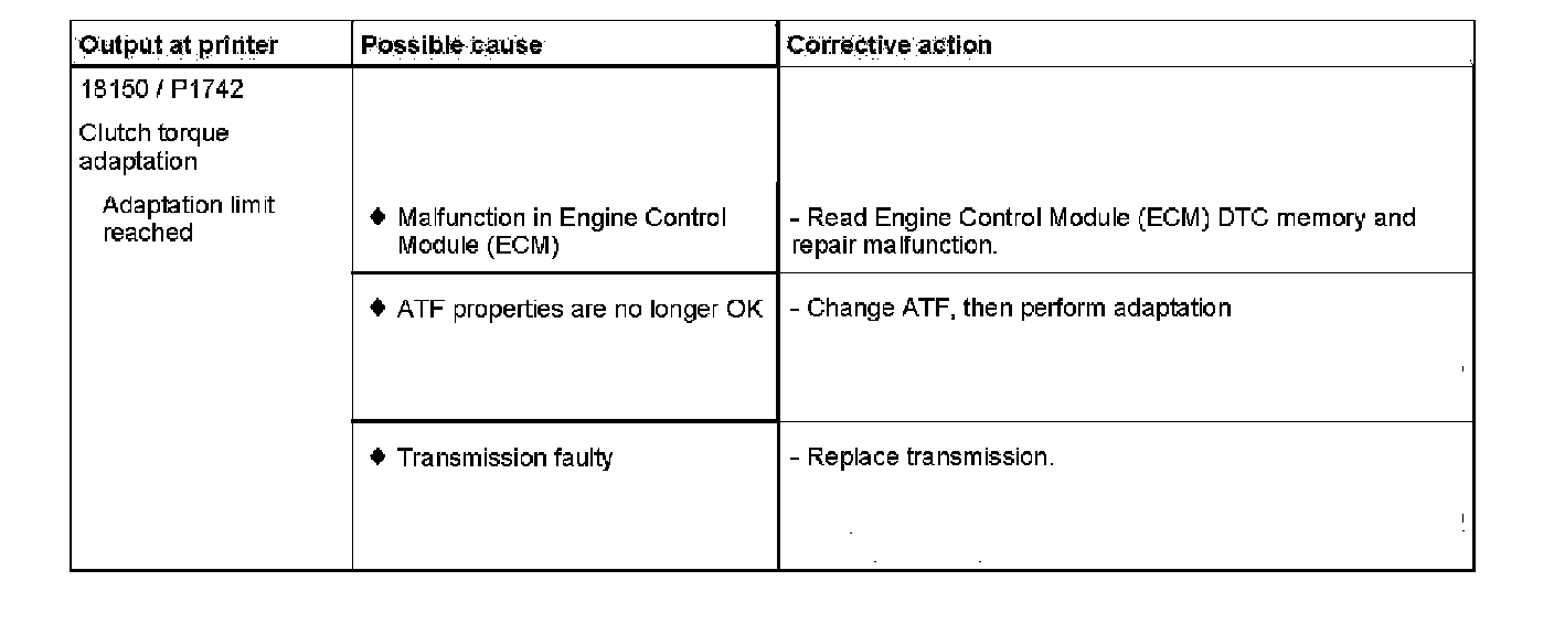 P1742 Clutch torque adaption; Adaption limit reached