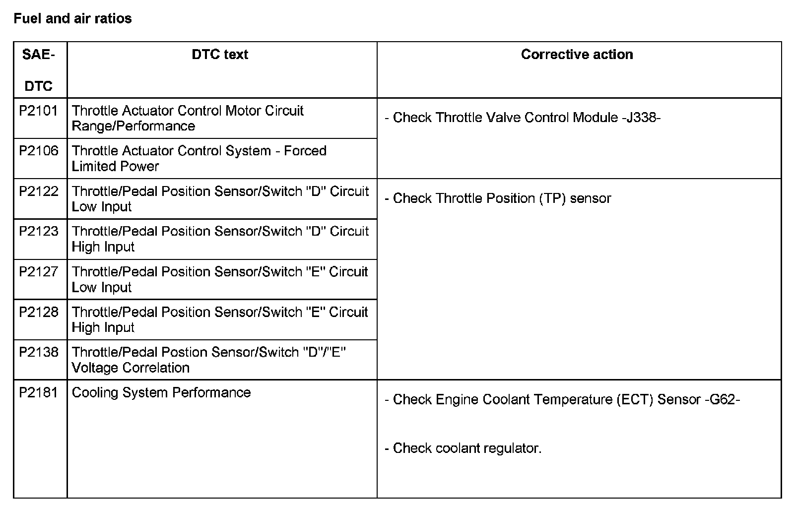 DTC P2101 - P2181: