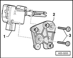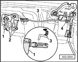 - Disengage operating rod - 3 - at rear lid lock, for this purpose turn hinge arm - 4 - clockwise and remove operating rod.