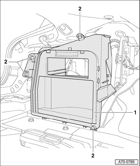 - Remove side trim luggage compartment on left side of vehicle.