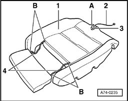 - Align heating element - 1 - on seat surface, remove protective foil and glue heating element to cushion.