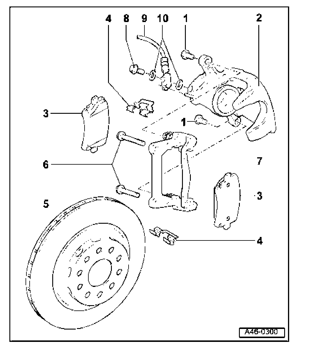 ^ Apply a small amount of polycarbamide grease G 052 142 A2 to contact surfaces between brake disc and wheel hub