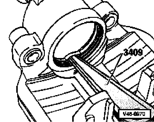 - Using removal wedge 3409, insert the inner sealing lip into the groove on the cylinder.