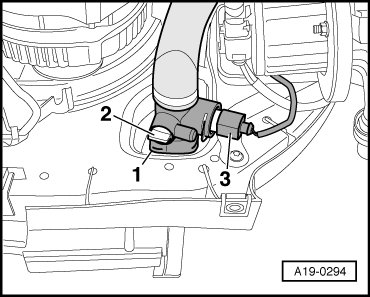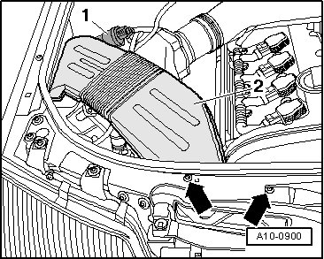 - Remove cover -1- in engine compartment (right side).