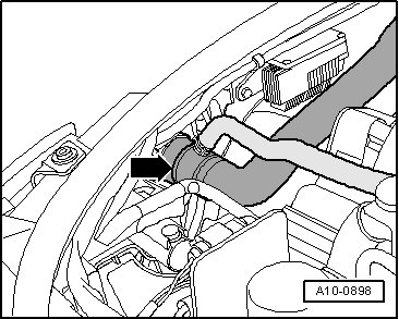 - Disconnect top coolant hose -arrow- from radiator.