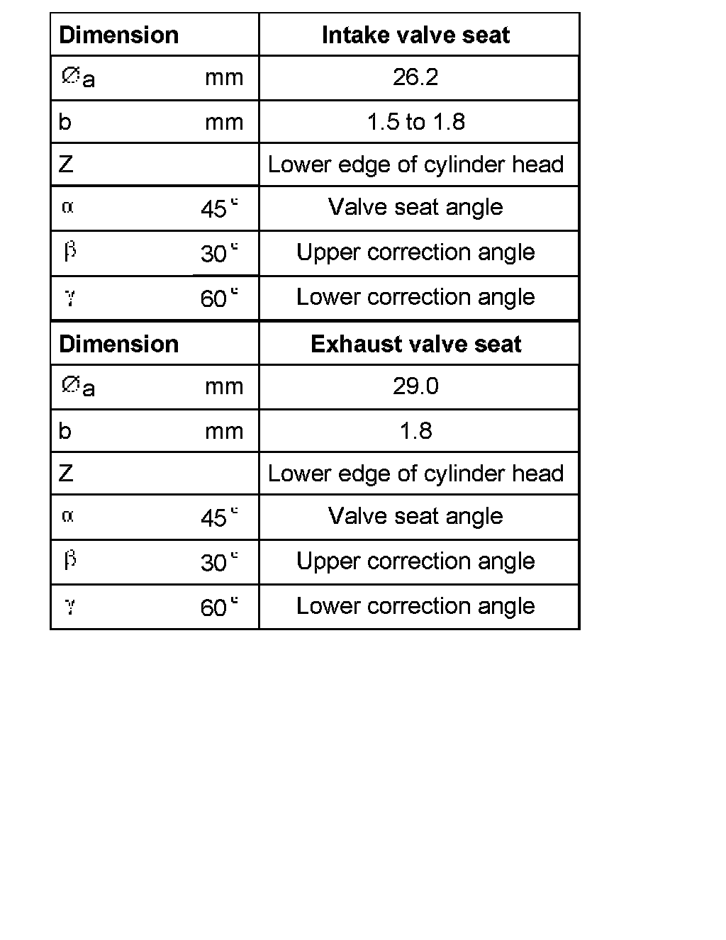 Valve Seat: Specifications
