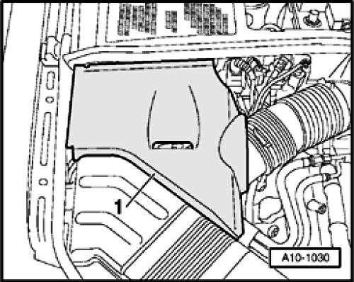 - Remove cover -1- in engine compartment (right side).