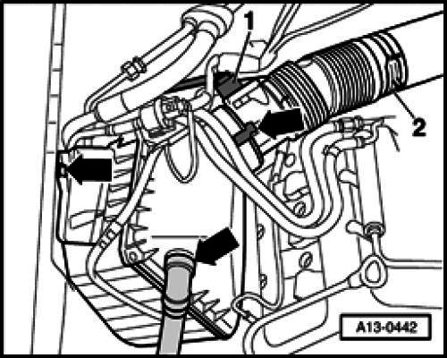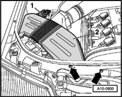 - Remove air guide hose -2- together with Mass Air Flow (MAF) sensor.