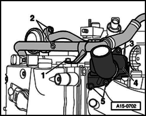 - Remove coolant hoses -2- and -3-.