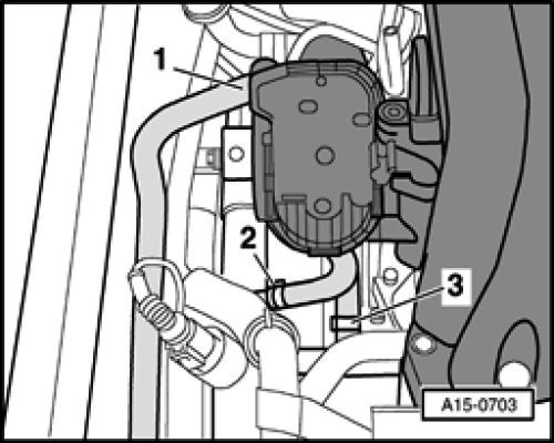 - Disconnect vacuum hoses -2- and -3- at intake manifold change-over valve -N 156-.