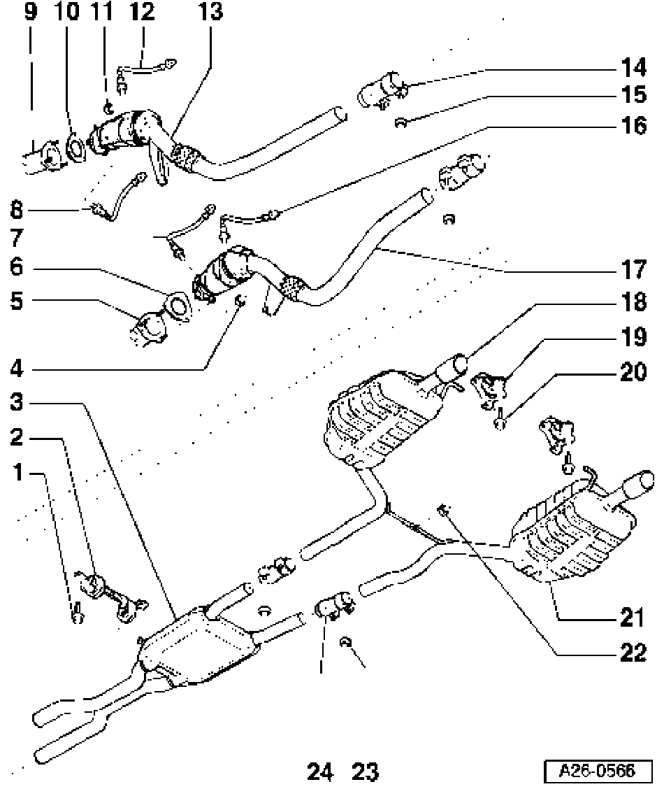 Exhaust system components, overview, (All Wheel Drive vehicles)