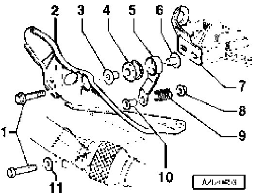 Fig. 7 Individual left mounting components for vehicles with automatic transmission 01J
