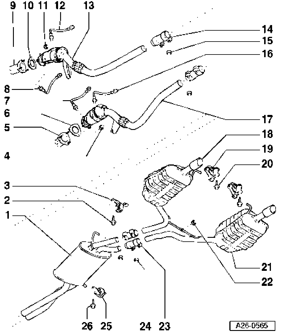 Exhaust system components, overview (Front Wheel Drive vehicles)