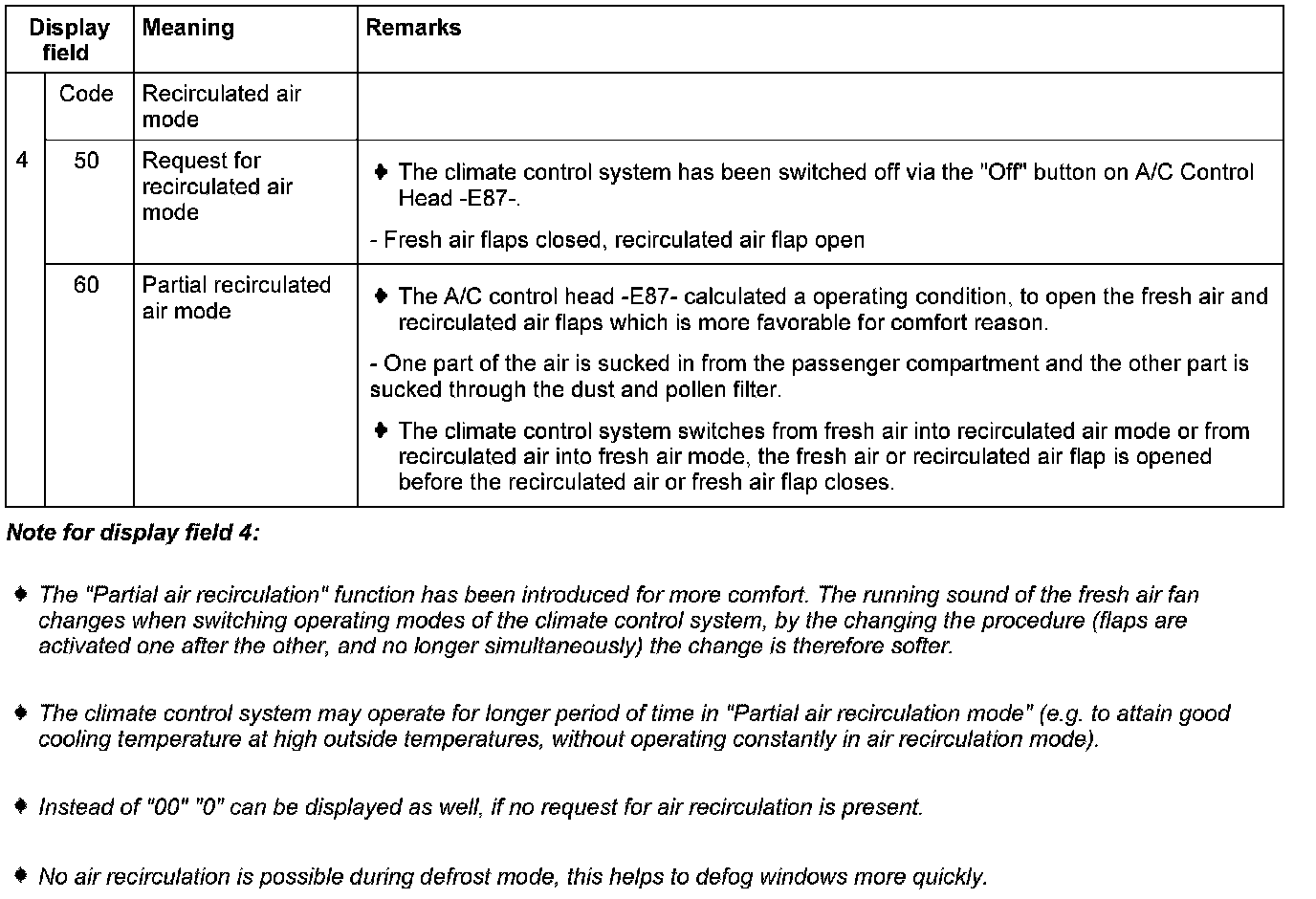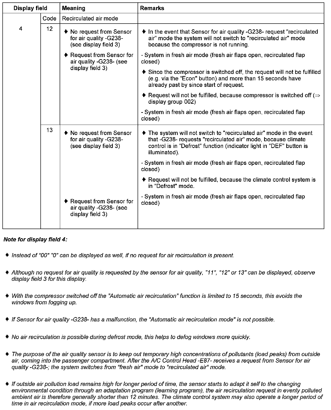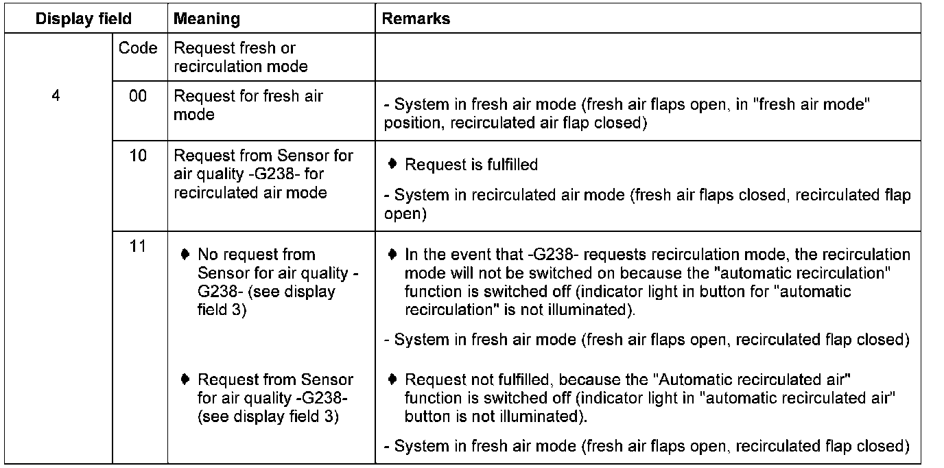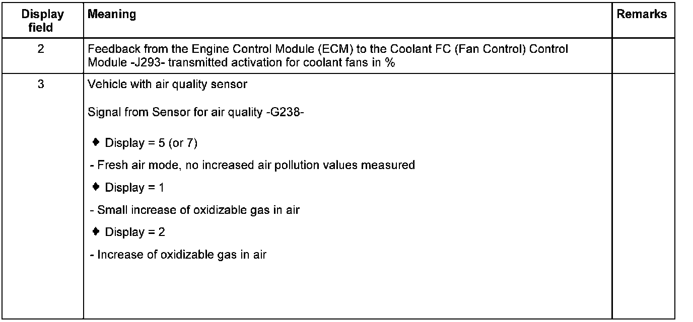 The activation of Coolant Fan -V7-, the signal from Sensor for air quality -G238- and the request for fresh or recirculated air mode