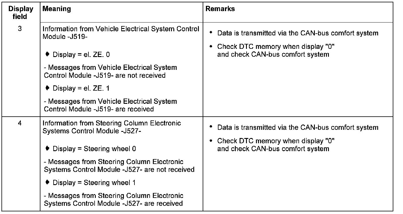 Information on the CAN-bus comfort system and operating condition of the Bus-system