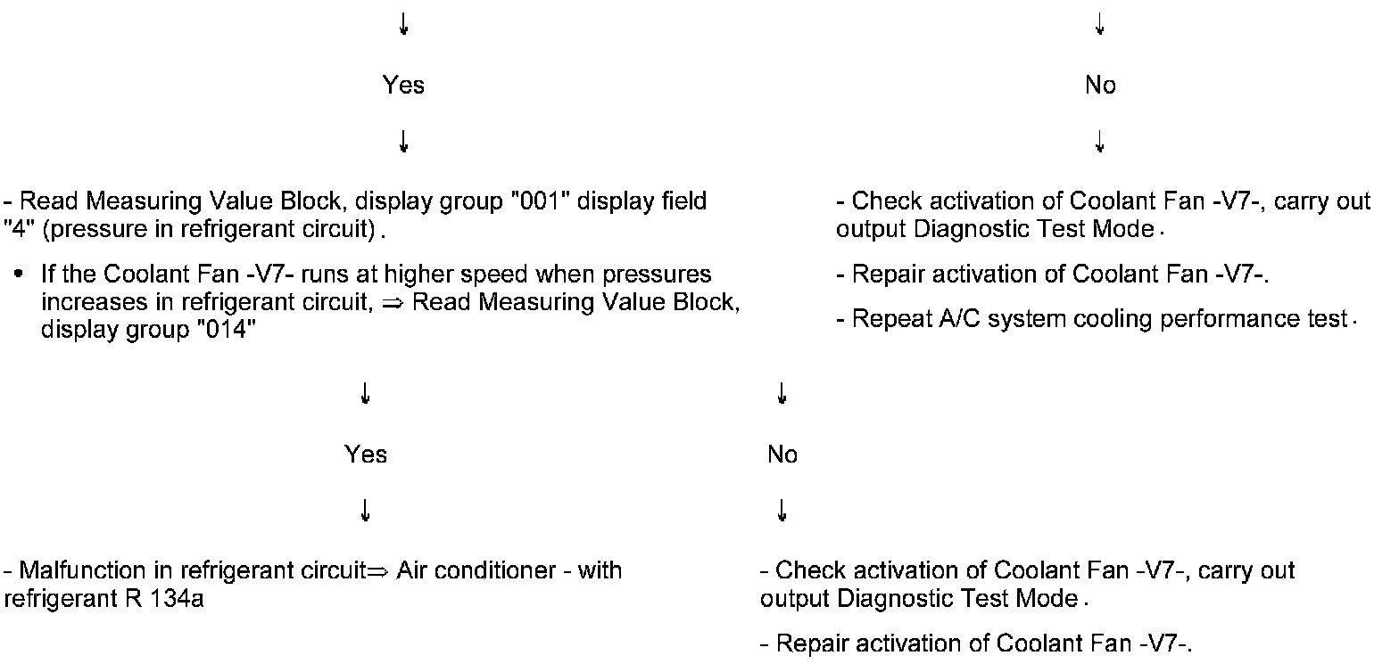 - Does the Coolant Fan -V7- run during cooling performance test (speed depends on coolant temperature and pressure in refrigerant circuit, speed is determined by Engine Control Module (ECM))?