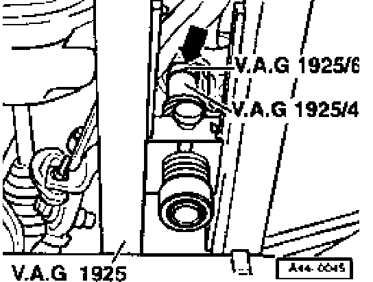 Note: On account of different wheel alignment platforms, it may be necessary to raise the front axle of the vehicle in order to install the spacer gauge VAG 1925. After it has been lowered, bounce the vehicle.