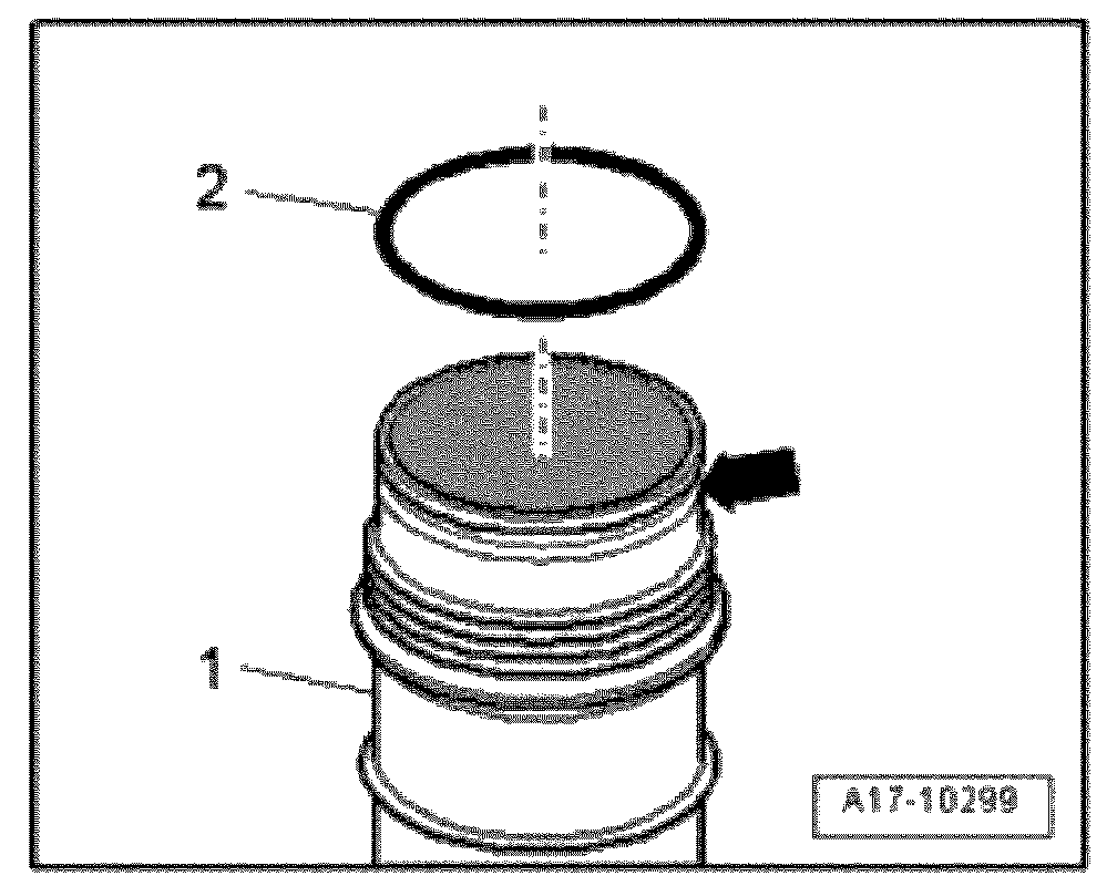 - Insert O-ring - 2 - in groove - arrow - on oil filter housing - 1 - .