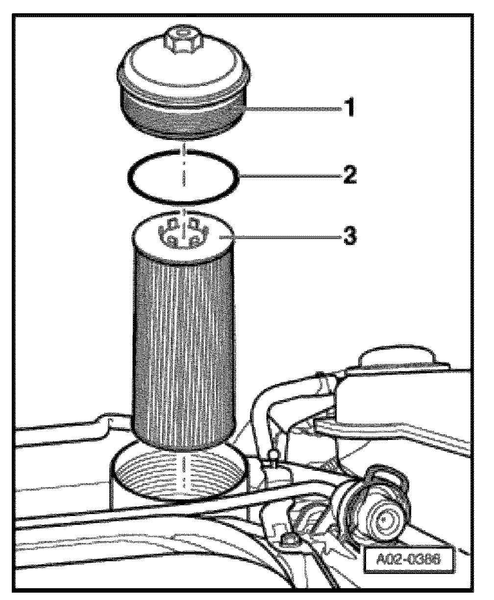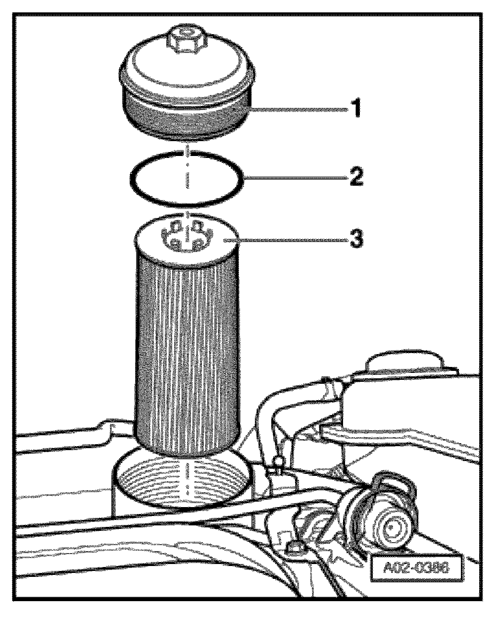 - Replace O-ring - 2 - as well as oil filter insert - 3 - .
