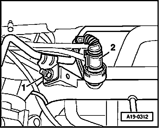 - Disconnect connector -2- at Engine Coolant Temperature (ECT) sensor -G2-/-G62-.