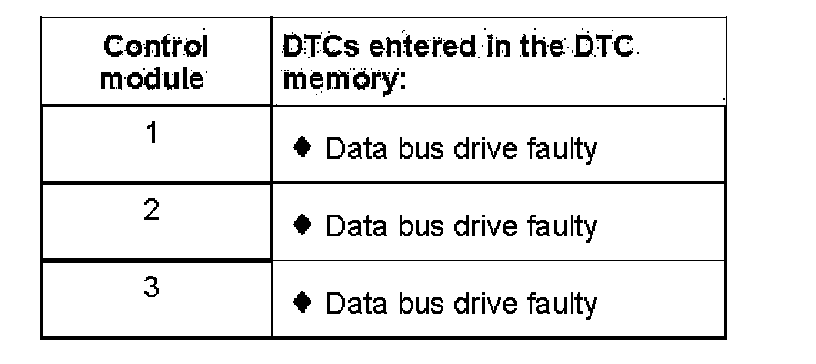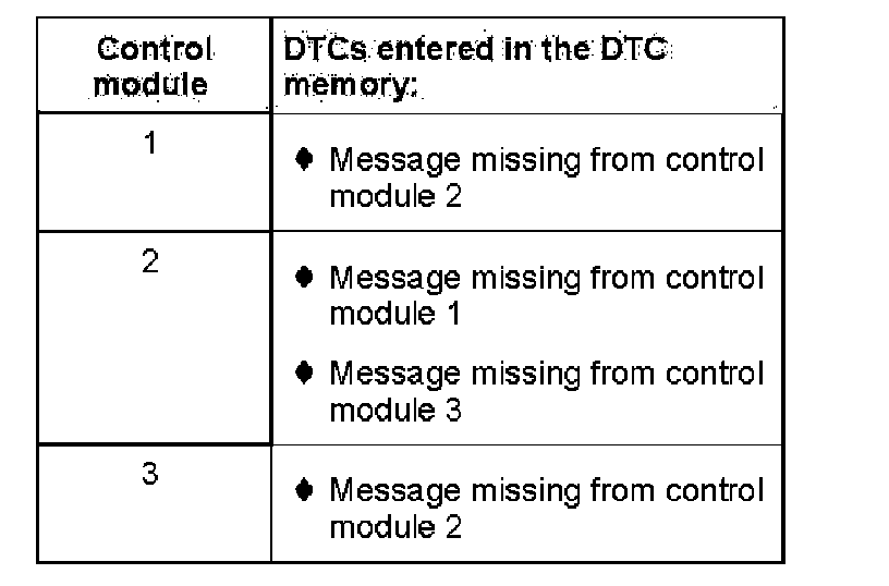 - Based on the DTCs entered in the DTC memories, it can be seen that control module 2 is not connected to control modules 1 and 3.