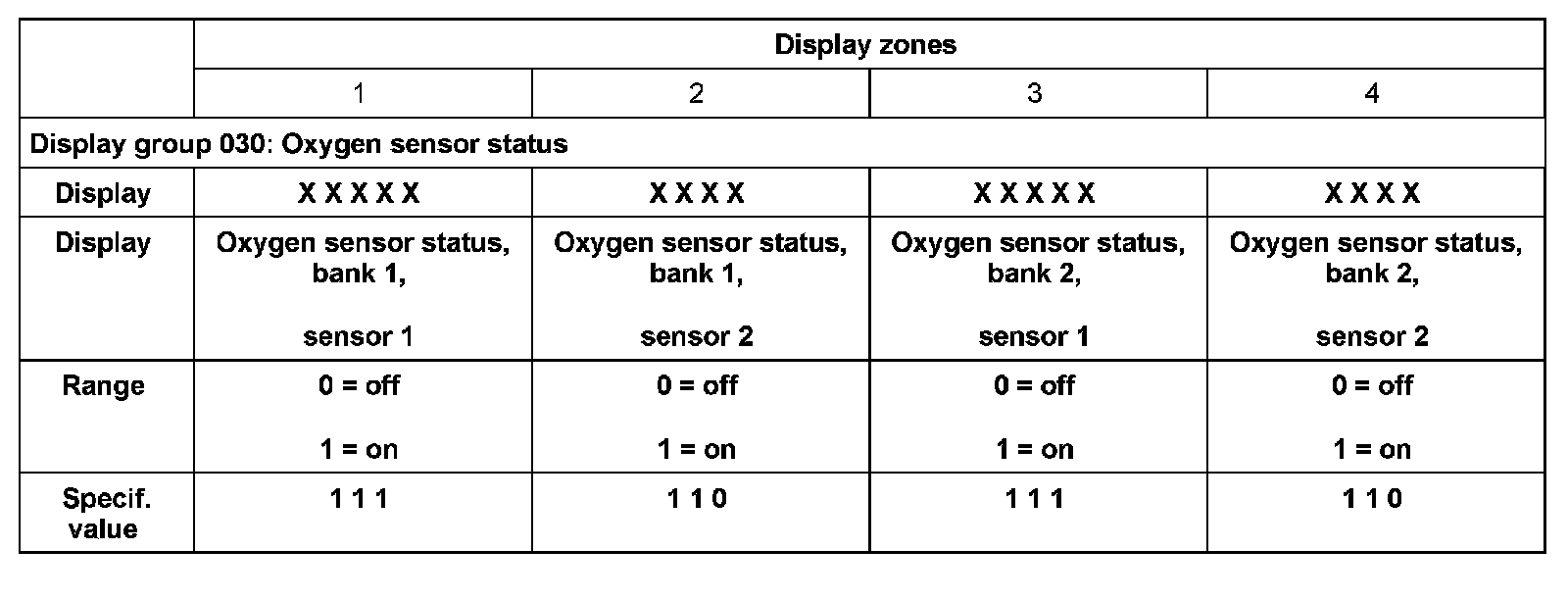 - The "oxygen sensor status" indicates the condition of the oxygen sensor control and the oxygen sensors.