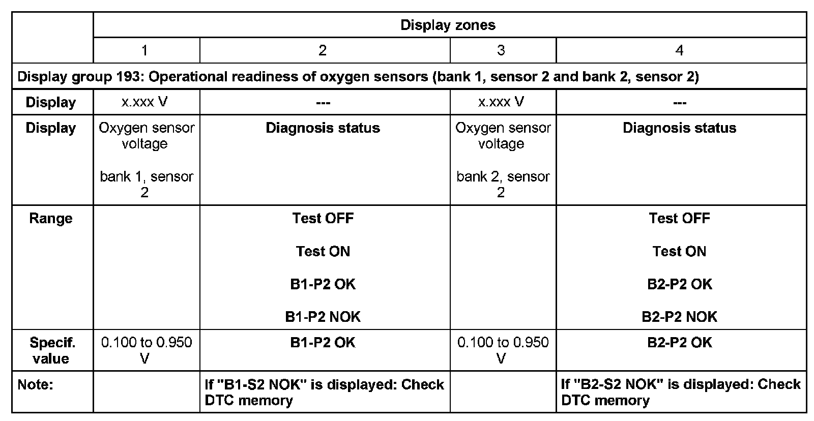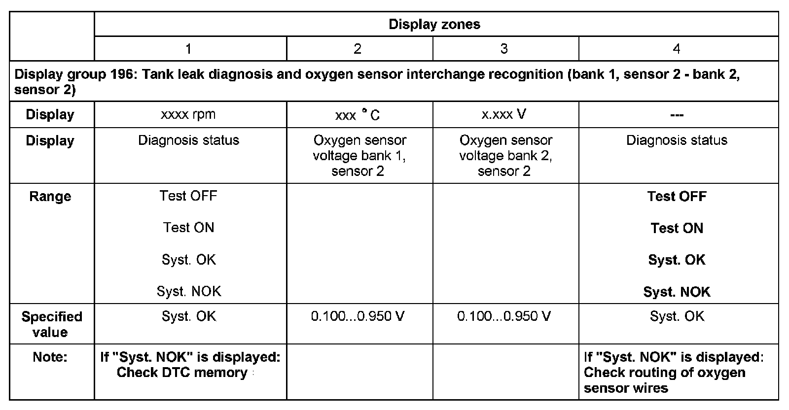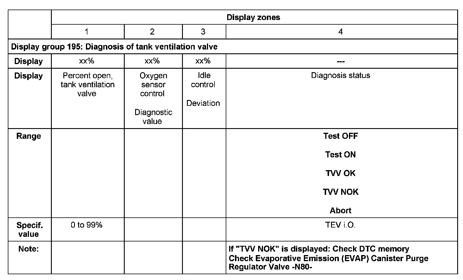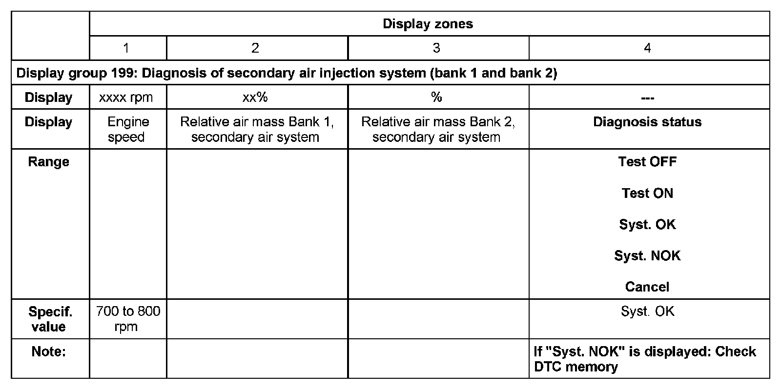 - Engine coolant temperature (ECT) at least 80 degrees C display group 004, display zone 3). Important: Warm up engine by means of a road test.