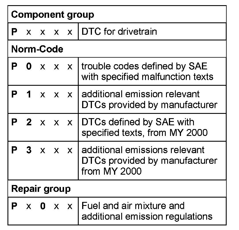 The DTC consists of a 5-digit alpha-numeric value with the following meaning: