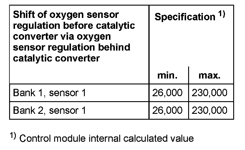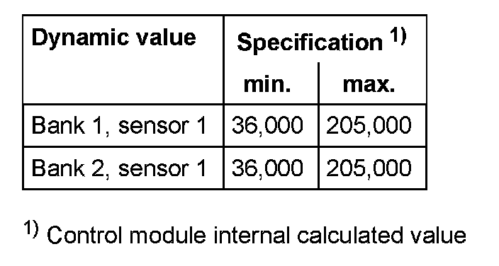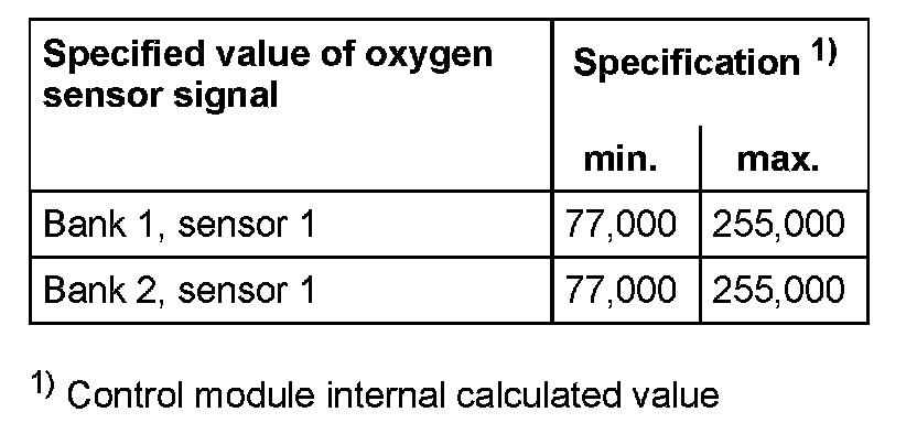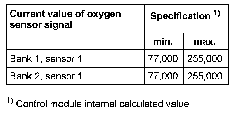 The values of the individual oxygen sensor signal outputs must reach the specified value or must be within the min.- and max.- limits.