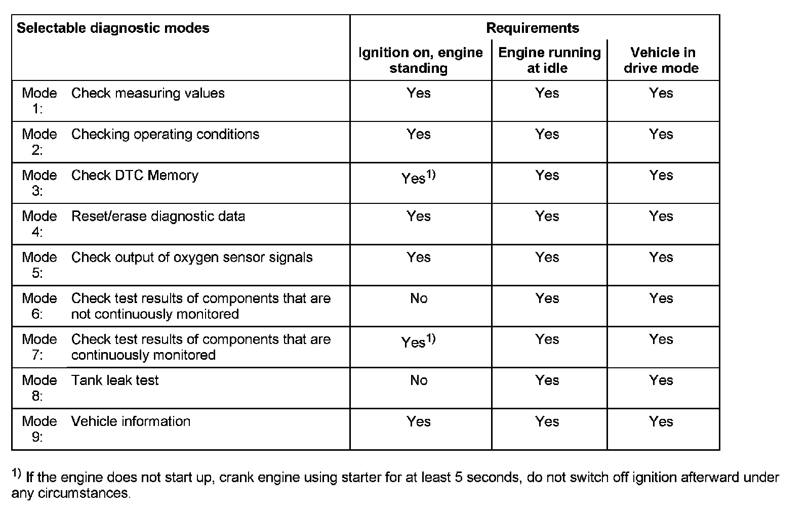 - The following diagnostic modes monitor all components and systems which influence the emission quality.