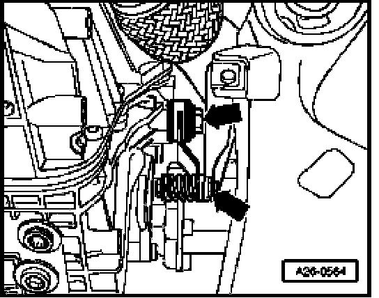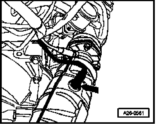 - Unscrew oxygen sensor behind catalytic converter (arrow) e.g. using special tool 3337/7.
