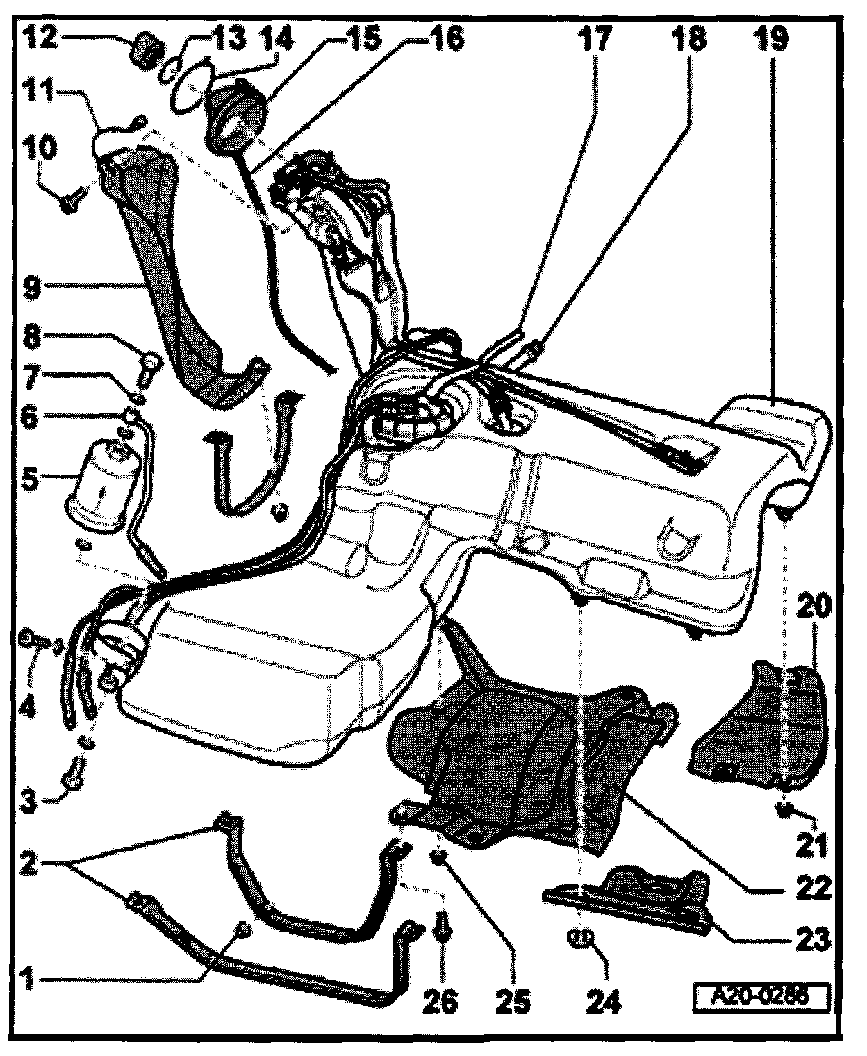 - After installation, check continuity between metal ring on fuel filler neck and chassis Ground: must be approx. 0 Ohms