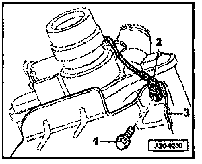 - Before threading in screw -1-, ensure tight fit of screw eye -2- on fuel filler neck protection plate Ground -3-.