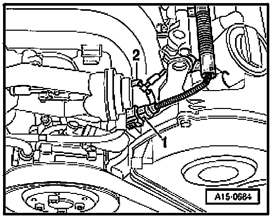 - Connect one terminals on solenoid valve to engine Ground using test leads and alligator clamp from VAG 1594 A.